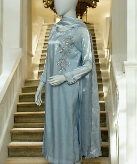 Light blue Glass Silk Dress 3pc