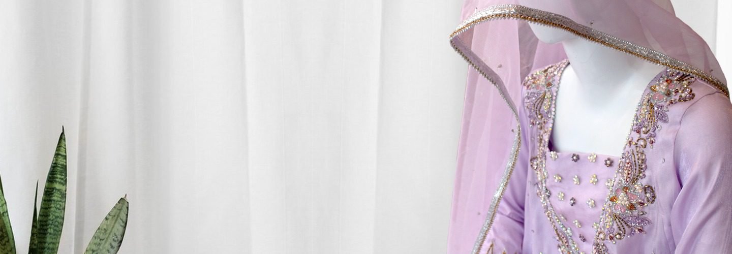 Soft Chiffon Lilac Dress with Net Embroidered Dupatta-3pc
