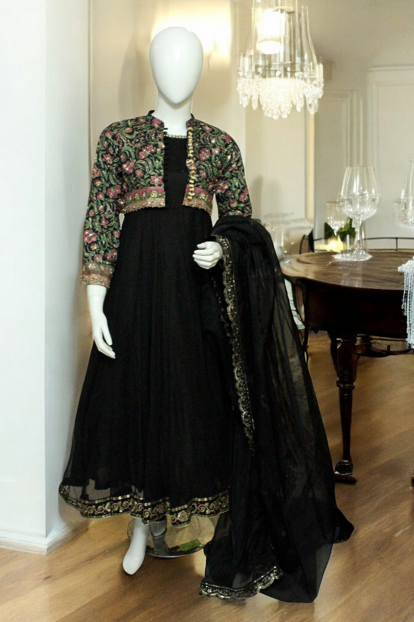 Black Jacket khadi net frock with organza dupatta Formal