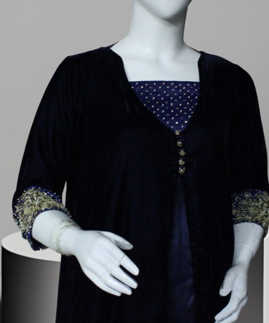 Navy Blue hand Embroidered Velvet Gown